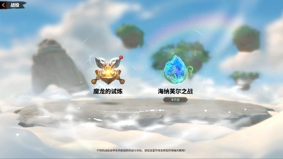 战役:战役分为两个玩法:左边的魔龙的试炼类似于闯关小副本,右边的海纳芙尔之战是跨服30v30多人对战,类似于万国觉醒中的埃及之战。