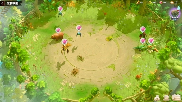 宠物家园:可以看到玩家捕获的宠物,每天可以抚摸一次获得亲密度。家园的地上可能会刷新落叶、脚印和树枝,点击后清理家园,也可以增加宠物亲密度。